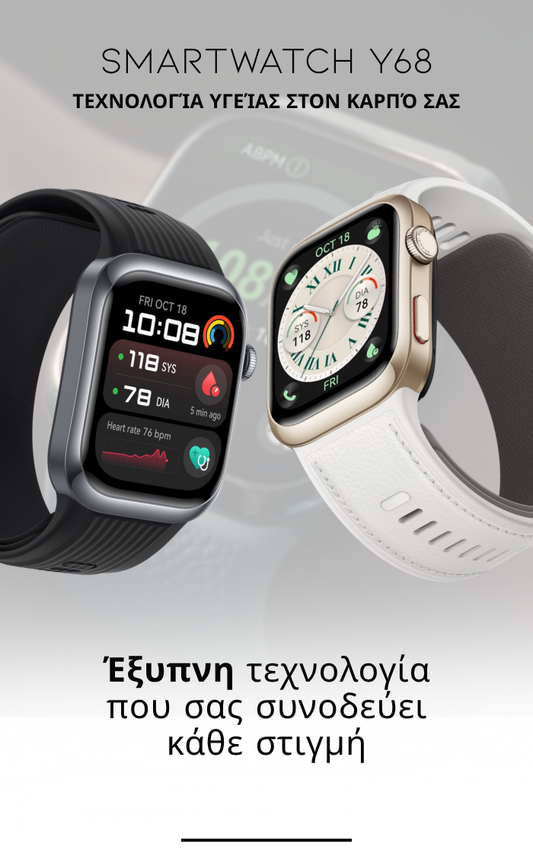 SmartWatch Y68 | Ιατρικό Ρολόι 3 σε 1 (Γλυκόζη, Πίεση, Κίνδυνος Εγκεφαλικού) | Μενού στα ελληνικά